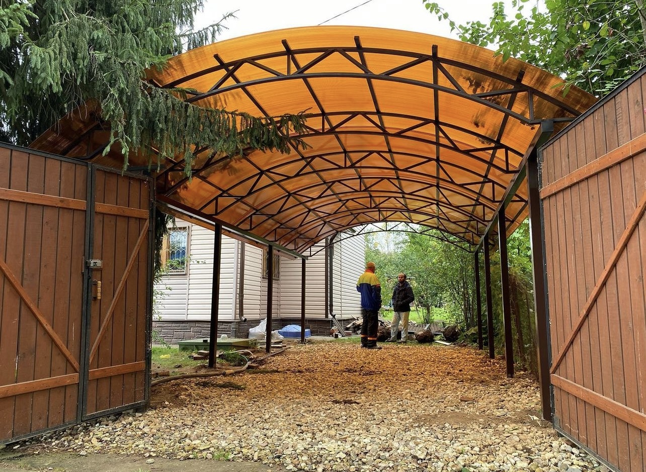 Наши навесы из поликарбоната в Кашире и Московской области используются для оснащения: